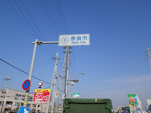 青い看板に奈良行きが出てこずに不安になりながら道を進める。