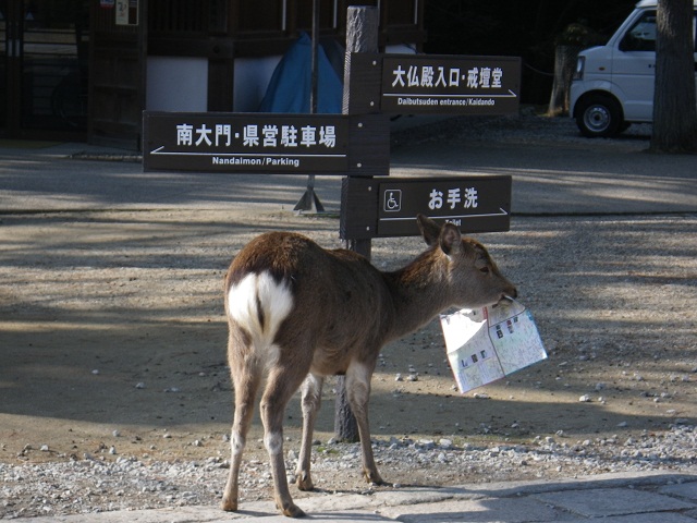 奈良市に入り、道に迷いながら何とか今日の観光メインの奈良公園に到着。