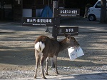 鹿が可愛いので早速鹿せんべいを購入し、鹿に餌をやろうとすると、