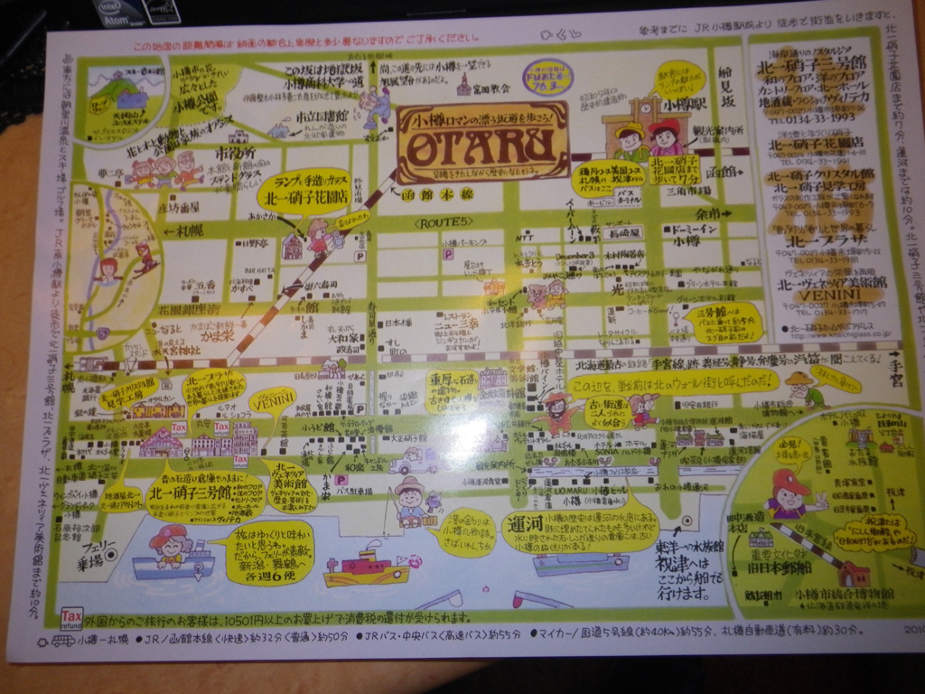 夜、街を歩いていたら小樽が意外に暖かいことに気づいた。昨日の舞鶴より暖かいぐらい。このとき、「北海道の寒さは意外に大したことがないかもね」、と相棒と口を揃えたが、そのことは完全な誤りだったことは後に気づく。