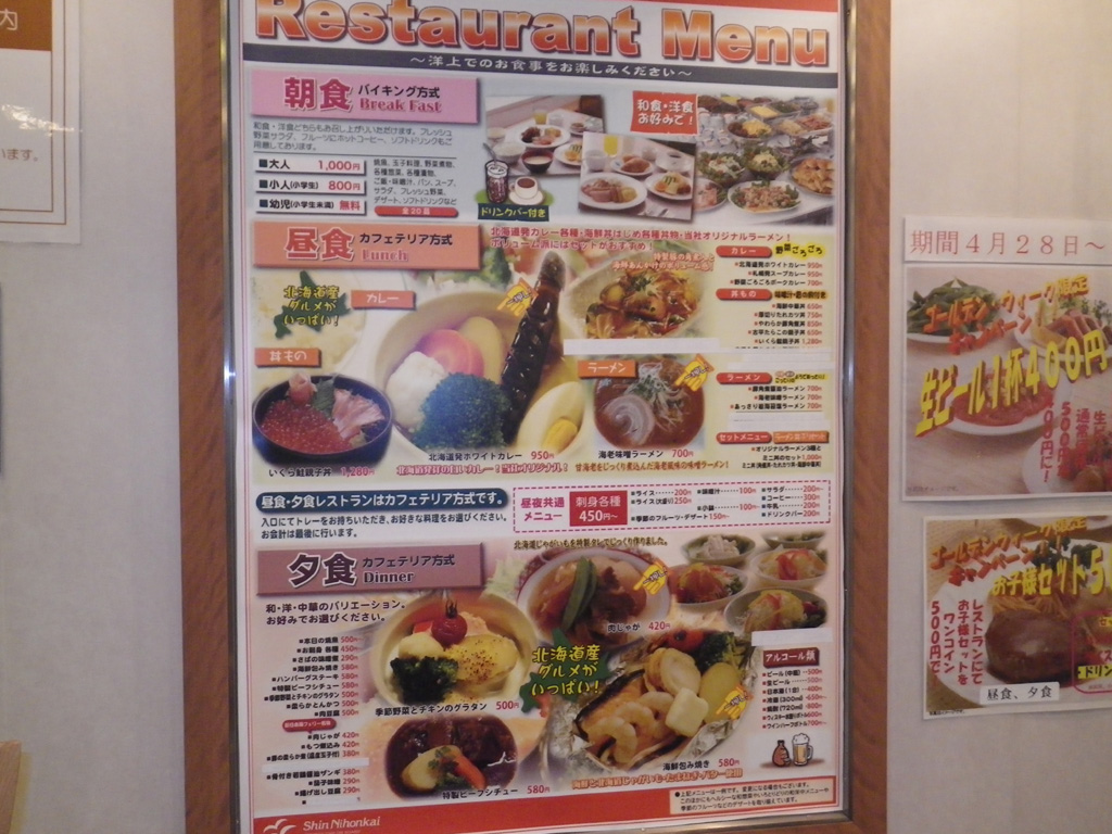 11時半になり、昼食を開始したのでこぞって来てくださいとの船内放送が入る。