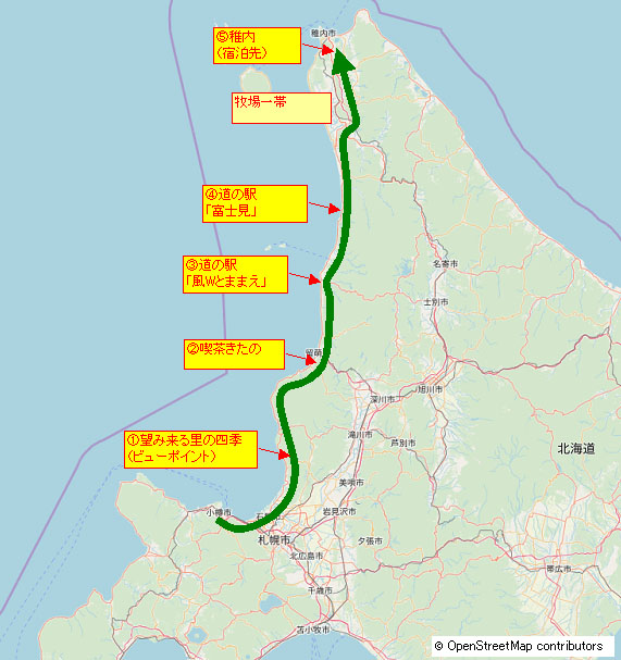 まずは国道5号線から石狩経由で留萌を目指す。距離は150キロぐらい。