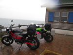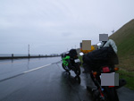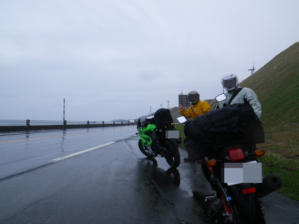 途中、長いトンネルが連続して続いたり、山道が続いたり、海岸線が続いたりと、ツーリングコースとしては最高の場所を走ってるんだけど、天候が悪くて既にクタクタ。特に海岸線は路面が濡れている上にNinjaが風に流され、恐怖を感じてしまった。