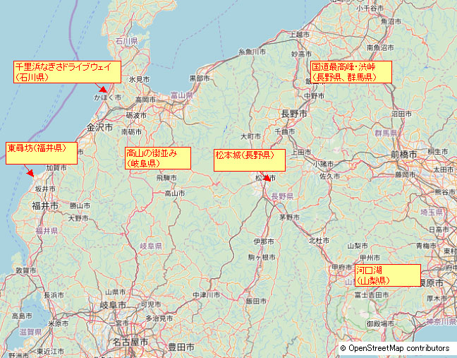 北陸甲信越で行きたいところは次のとおりです。