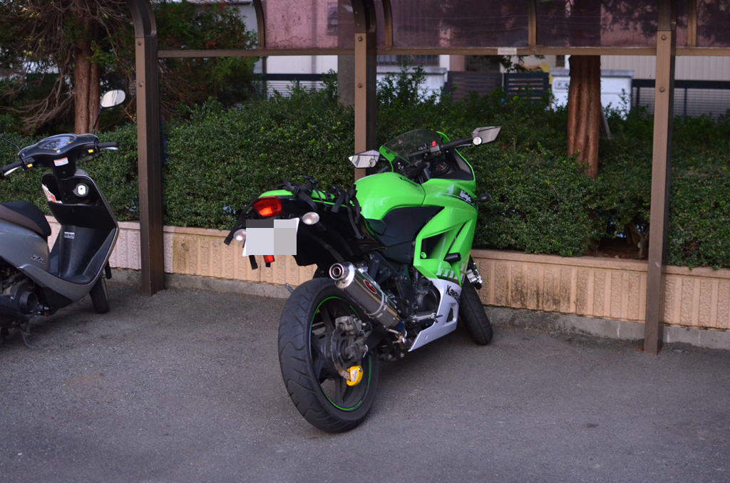 空を見てそのままホテルをチェックアウトする。駐輪場に停めているNinjaに荷物をセットして今日もいつものように出発する!余談だが、Ninjaにつけているアラームロックを外すときが一番緊張する瞬間(笑)