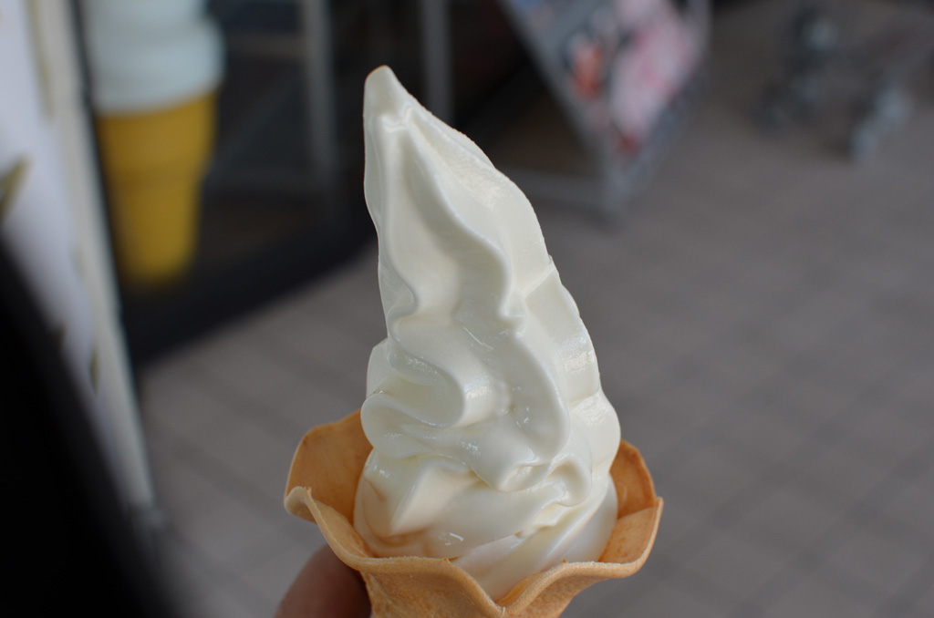 ツーリングマップルでここのシルクソフトクリームがおいしいと書いてあったので早速注文。値段は330円。味は・・・普通だった。330円はちょっと高い気がする。(写真)