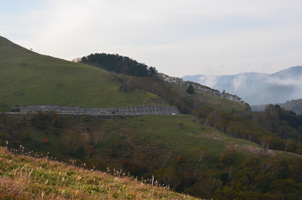 ようやく頂上にある美ヶ原高原に到着。昨日の渋峠と同じぐらいの標高だが、夕方のせいかこちらのほうが随分寒い気がする。駐車場も凄まじい広さで夕方のせいかクルマもまばら。ちなみにここは道の駅らしい。(道の駅「美ヶ原高原美術館」)