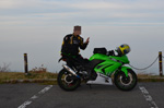 ビーナスラインは山梨ライダーの方に頂いた情報のとおり、景色壮観な素晴らしい道。時間があればNinjaを色んなところに停めて写真を撮りまくりたい!(写真) 県道178号との分岐の先はそれまでの観光道路とは一転して凄まじい急な登りが続いて更に山を登っていく。路面が濡れている状態だとこの坂を上ることは出来たとしても下ることはできない。それぐらい急な下りで自転車だと本当に怖くて走れないと思う。