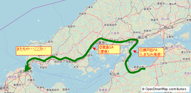 新居浜(愛媛)~門司港(北九州)は松山自動車道・山陽自動車道(高速)を利用しています