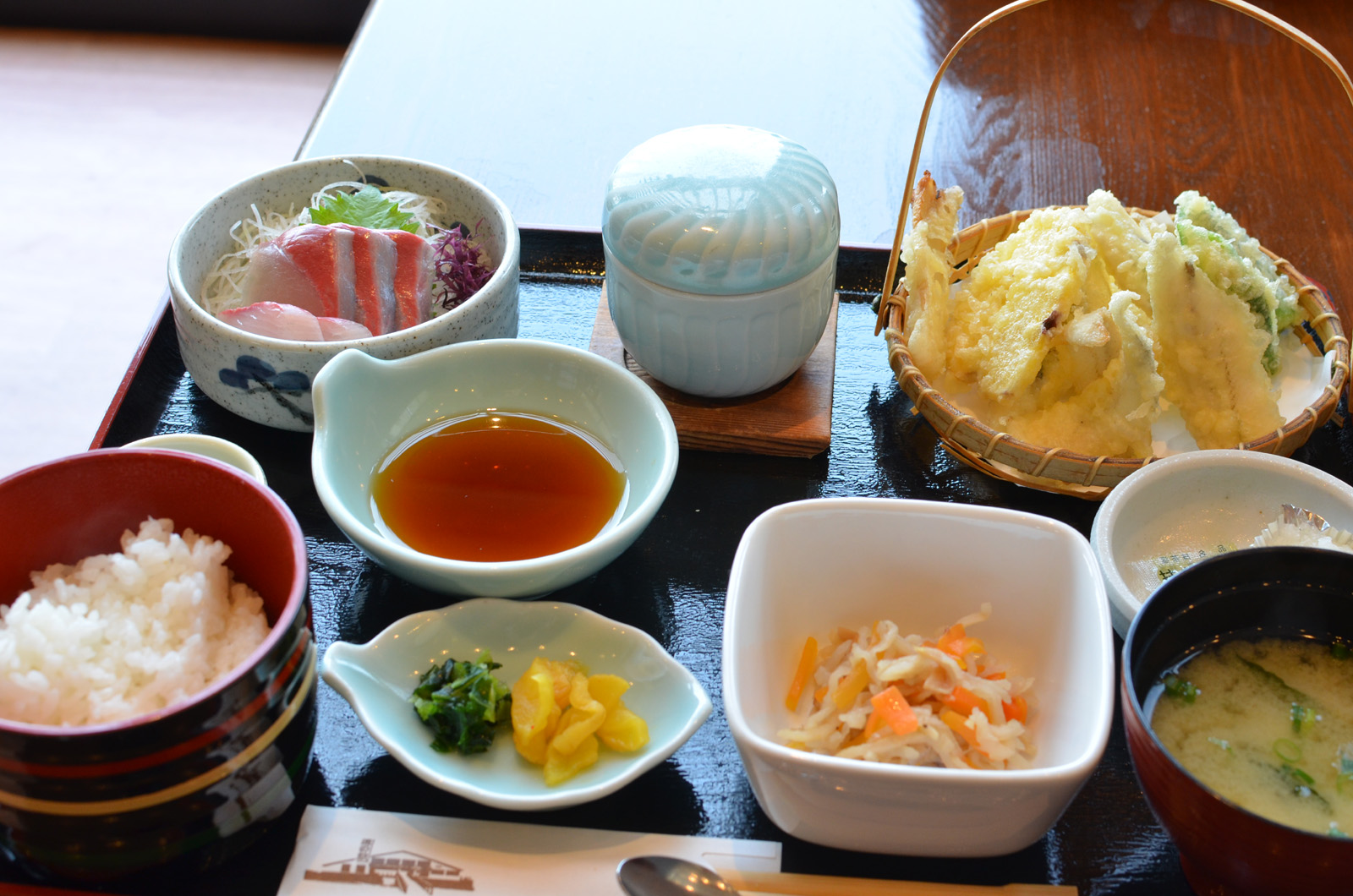 県道60号で周防大島を回って、再び道の駅「サザンセトとうわ」に戻る。目的は先ほどのレストラン。メニューは豊富で何にするか迷ったが、新メニューの「天ぷら定食」を注文する。