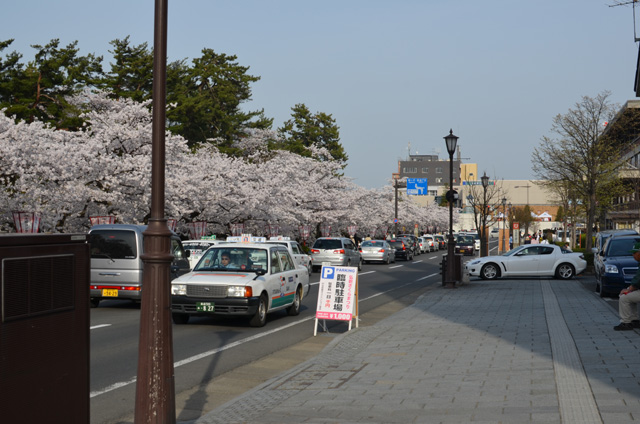 この先は弘前城。弘前公園は東北屈指の桜の名所