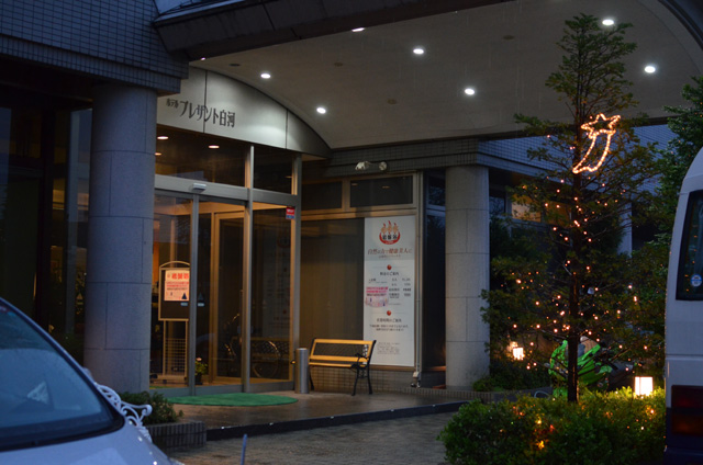 写真を撮影したのは18時過ぎ。実際に到着したのは16時。Ninjaを正面入り口に置かせていただいた