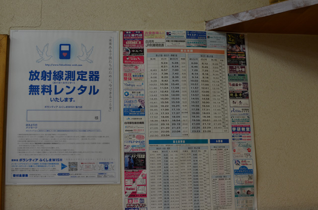 ホテルを出てすぐ横のラーメン屋「菜華軒」に入る。ラーメン大盛と焼き飯を注文し、店内を見渡すと放射能測定器の無料レンタルのポスターが張ってあった。不謹慎だが福島に来た事を実感する。