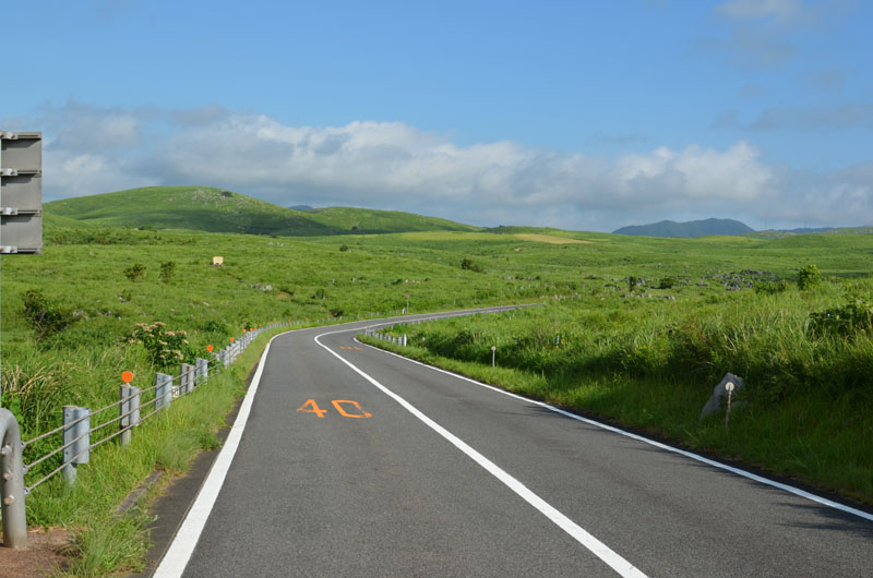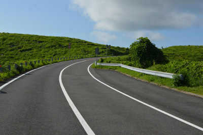 | 朝早いせいかクルマは皆無。青い空と白い雲の下に緑の台地がとっても素晴らしい。北九州からそう遠くないツーリングスポットだけど、ここに来たのは3年振りぐらい。日帰りだと秋吉台~仙崎~角島が定番ルート。 |