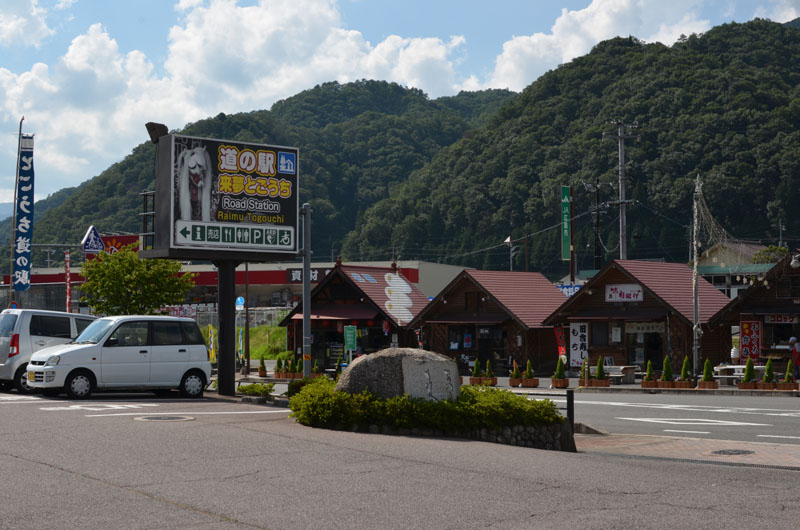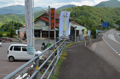 道の駅「来夢とごうち」に到着。戸河内と書いて「とごうち」と読む。来夢とごうちは道路を挟んで形成されている変わった道の駅。目の前には中国自動車道の戸河内ICがあるので交通の便もバッチリ。 |