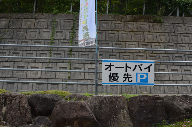 オートバイ優先のめずらしい施設。オートバイはどこに行っても軽視されているところが多いので・・・。 |