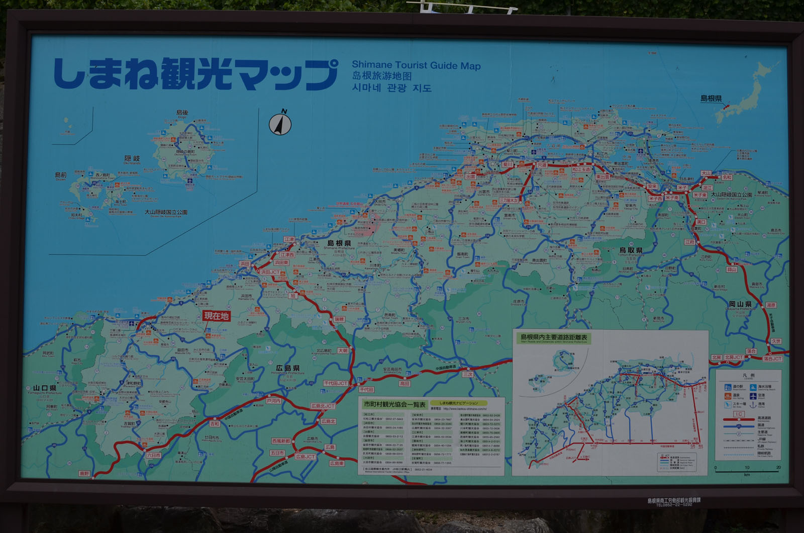 看板を見ると、島根県の広さを実感。西端の津和野町から東端の安来市まで移動するのにどれぐらいかかるんだ?