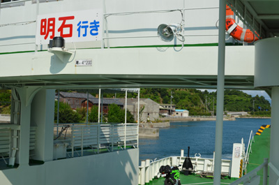 Ninjaをフェリーに乗せる。客室がないとても小さいフェリー。こんな小さな船は初めてだ。クルマ3台、バイク1台が乗船する。