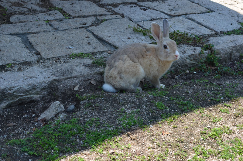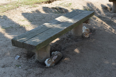 バスが来るまでベンチで腰を掛けていると、早速ウサギを発見!人間によく懐いていて可愛らしい。 |