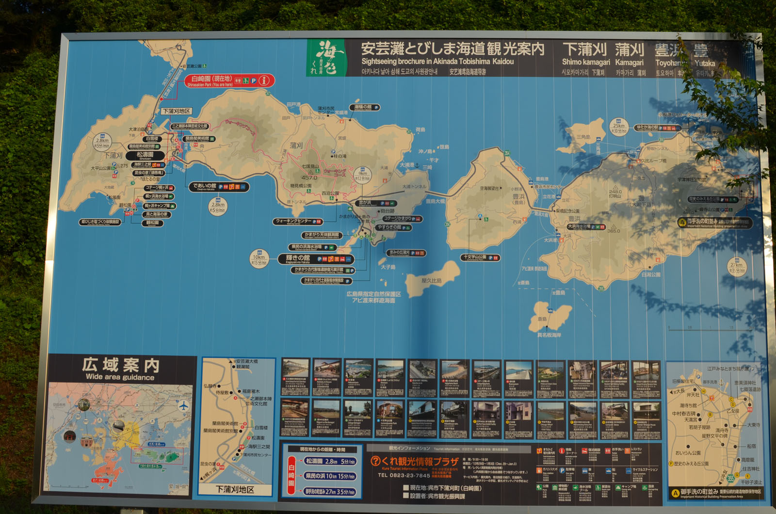 安芸灘とびしま海道と呼ばれるこの一帯は7つの島が橋で繋がれていて、「裏しまなみ海道」とも言われている。一番端は愛媛県の関前村。離島間はフェリーも頻繁に出航していて、瀬戸内の島を堪能できそうだ。