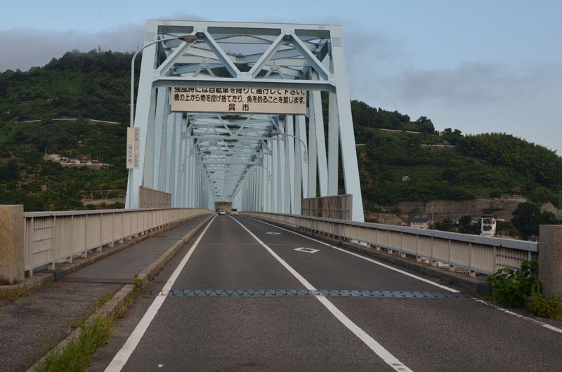 下蒲刈大橋。最初の島(下蒲刈島)と2番目の島(上蒲刈島)を結ぶ橋。最初の安芸灘大橋以外はすべて通行料が無料となっている。