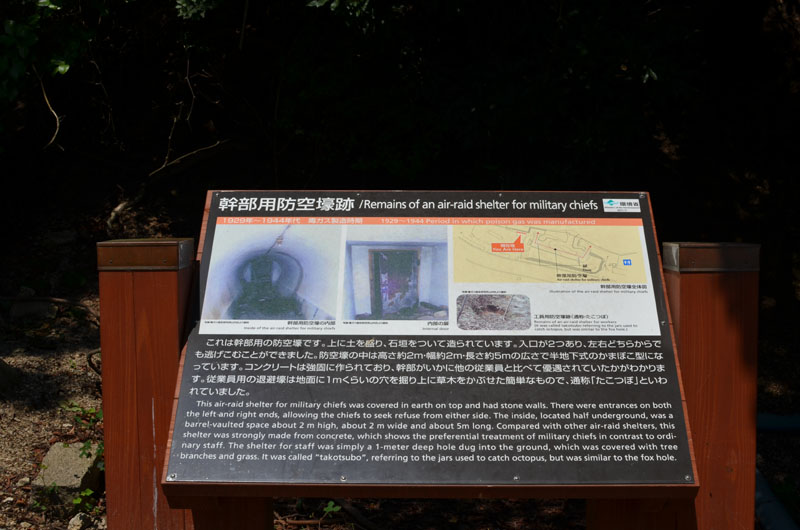 幹部用の防空壕らしい。権力者は昔の時代から自分達にとって都合のよいものしか作らない。今の政治家も輪をかけてひどいものだ。 |