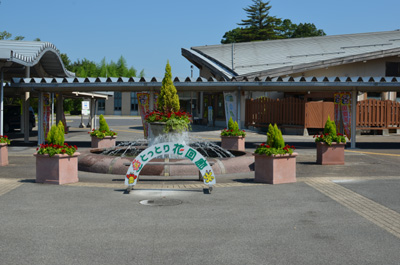 道の駅は名前のとおり、瓦屋根の建物が立ち並び江戸時代みたいな雰囲気だ。ここは安来市(やすぎし)らしい。 |