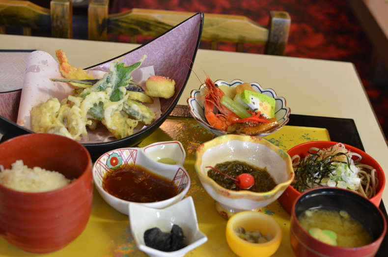 道の駅には食事処が併設されていたのでここで昼食を取ることにする。食事処の名前は「藍」というらしく、1380円の御膳定食を注文。出てきた御膳定食は写真のような凄い豪華なものでびっくり。うなぎの蒲焼に海老に玉子焼きにシイタケやたけのこの野菜類に天ぷら、出雲そば、漬物、そしてデザートまで付いている。味もどれも素晴らしくてこれで1380円は相当コストパフォーマンスが高いと思う。
