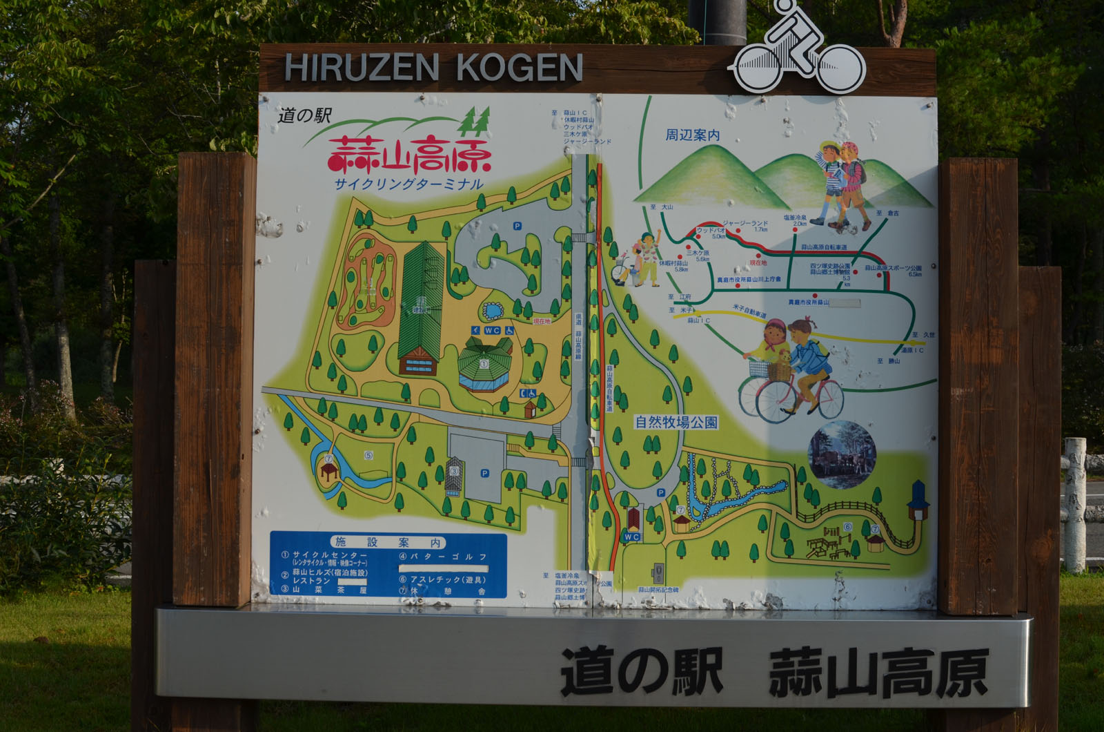 道の駅「メルヘンの里 新庄」からほどなくして、西日本屈指のリゾート地、蒜山高原(ひるぜんこうげん)に入る。最初は道の駅「風の家」に到着。実はここ、2年前にNinjaで一番最初にロングツーリングで来た場所なのだ。目の前にひまわり畑が広がる。