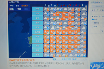 西日本は5/1(水)以降の天気は概ね良好。この予報なら合羽は不要と思うが、念には念を入れて一応準備しておく。 |