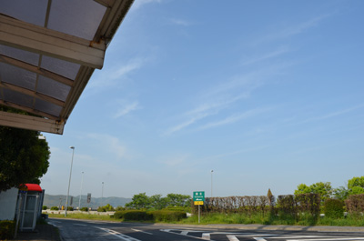 | 北九州(戸畑)を6時に出発。国道3号で古賀まで走り、古賀ICから高速道路で宮崎県の都城に向かう。今日は平日なので高速料金が半額じゃないのは痛いが、その分、若干空いているわけで渋滞メッカの福岡市から久留米市を難なく抜けて来れた。山川PAでみる空は快晴。 |