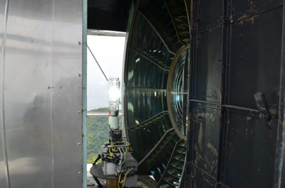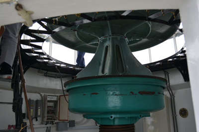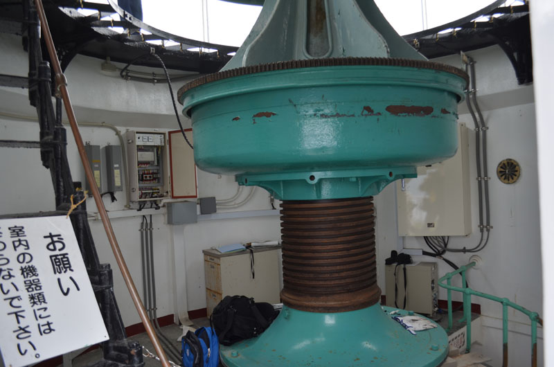 上は大人1人がやっと入れるぐらいの空間。機材の真ん中には左写真のようにランプが常時照らされていて、その周りを大型の反射鏡?が回っていた。なるほど、こうやって光の角度を調整していたのか。灯台のメカニズムにはあまり興味がなかったので、これを見るまでは単純にライトそのものをまわしているだけと思っていた。
