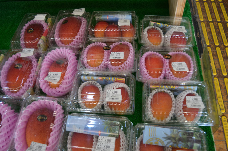 中の売り場ではマンゴーを売っていた。値段は1500円~5000円ぐらいで値段も数もバラバラ。どういう根拠で価格を決めているのかよくわからなかった。 |