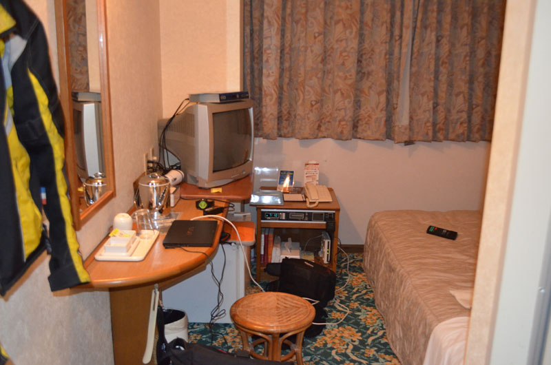部屋は他の亀の井ホテルよりワンランク下(古い)だった。ここだけ他の亀の井ホテルより値段が安い理由がわかった。でも、インターネット接続付きで朝食付き、さらに駐車場無料とくれば4000円で文句の言いようはない。 |