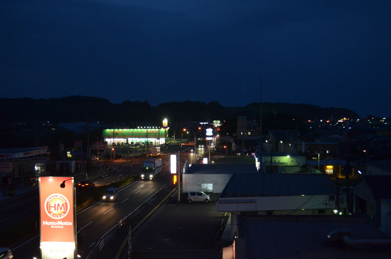 | 夕飯は何にしようかと思い、部屋から外を見ると目の前には持ち帰り弁当チェーンの「ほっともっと」とローソンが。ホテルの客をターゲットにしているに違いない!これを見て周辺の飲食店を探すのが面倒になった。(笑) |