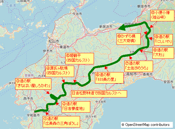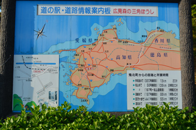 このあたりは鬼北町というらしい。ここから高知市まで120キロ、松山市まで106キロ。こうみると改めて四国の狭さを実感する。面積でいうと四国の倍が九州、九州の倍が北海道、北海道の3倍が本州となる。