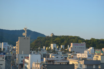 朝起きて空を見ると今日も素晴らしい快晴!昨晩21時頃、宇和島城を見たときはライトアップされていたが、朝方3時ぐらいに目が覚めて宇和島城を見たときは真っ暗だった。 |