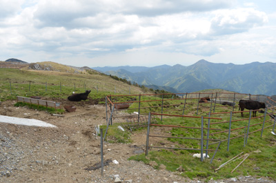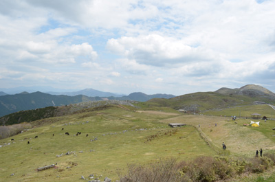 四国カルストに入ると途端に景色が開けてきた。ここには一昨年前の夏に来たが前に来たときの感動が蘇る。個人的には姫鶴平(地芳峠から東)より、こっちの大野ヶ原(地芳峠から西)の方が好きだ。 |