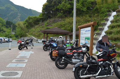 快走路を走り抜けて道の駅「633美の里」へ。これはムササビの里と読むらしい。ここでもライダーが多数休息していた。ここら辺を走っていると九州では既に絶滅の感があるピースサインを結構いただけた。(もちろん返しますよ)