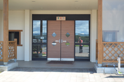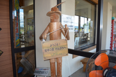 途中、「絵本の里けんぶち」というメルヘンチックな道の駅を見つけた。トイレの入り口からしてお洒落。(写真左下)