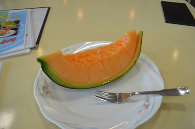 甘エビ丼を食べたら、なんとなくデザートが食べたくなったので、苫前メロン(400円)を注文。出てきたメロンはメチャメチャ甘くてウマかった。普段、メロンを食べる機会はないんだけど、本場のメロンってこんなにウマいの?北海道万歳! |