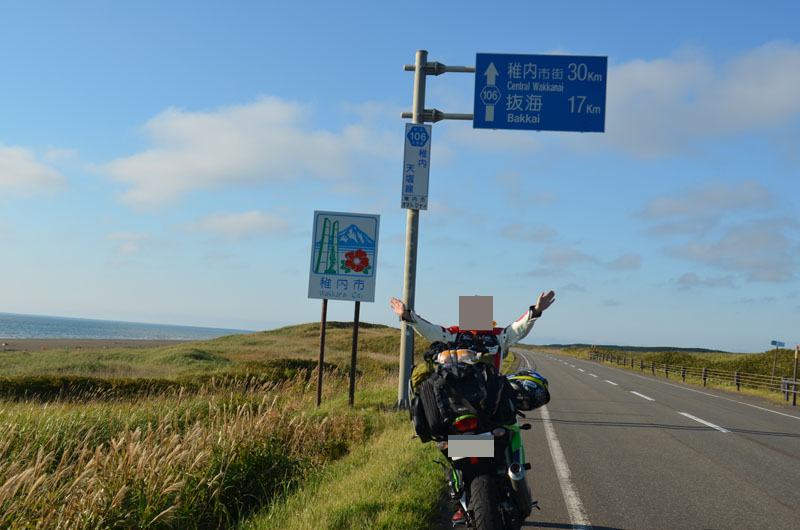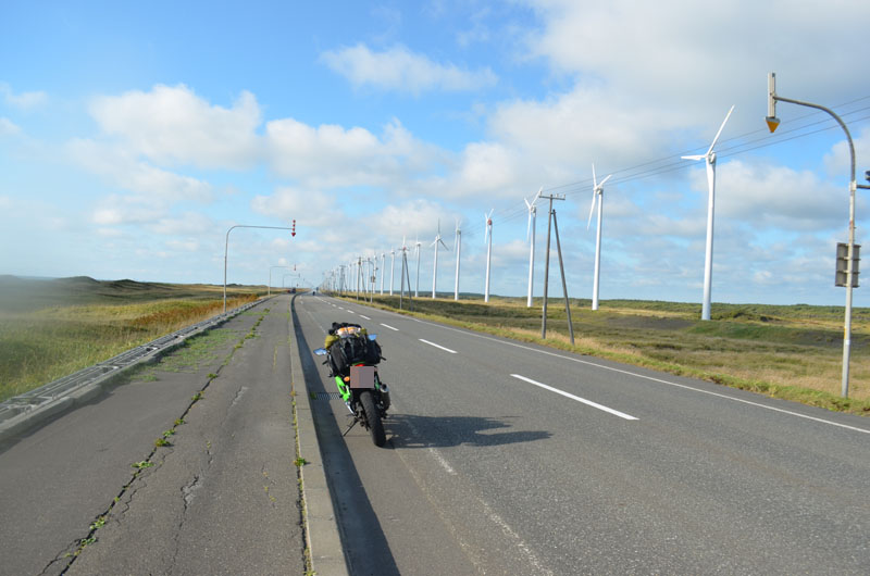 道の駅「風Wとままえ」から北に向かう道は「オロロンライン」と呼ばれる快走路。北海道らしい景色が連続して続き、一昨年走った苦い想い出が一つ一つ除去されていく感じがする。(笑)