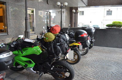 昨日、バイク置き場からホテルまで荷物を持ってくるのが大変だったので、今日はバイクをホテルの目の前まで移動させて荷造りをしようと思っていたが、雨が突然降ると辛いので結局500メートル先のバイク置き場まで荷物を持ってきた。500メートル遠いよ~。(;一_一) 出発から疲れた。