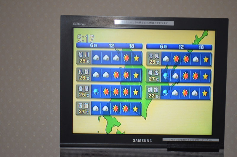まだ雨は降っていないが、テレビをつけて天気予報を確認すると予報通り早朝は雨。出発をいつにするか考えていたら5時半を過ぎて外から雨が降ってきた。早朝のみ雨であれば少し出発を遅らせよう。