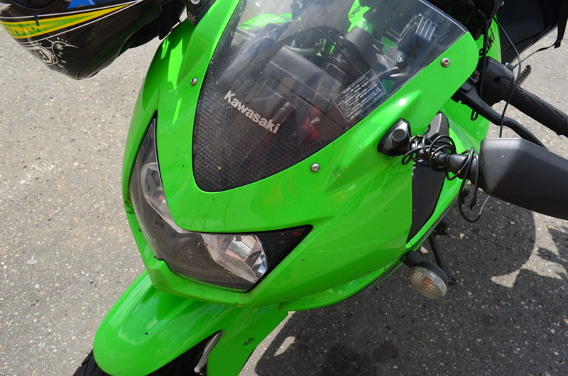 外に出て次のルートを検討している最中、たまたまNinjaに目がいくと、あちゃ~、正面やら背面やら、色んな箇所が悲惨なくらい汚れていた。行きは雨の中を突っ切ってきたし、北海道に来ても酷使しているから・・・。この写真だと伝わりにくいが。 |