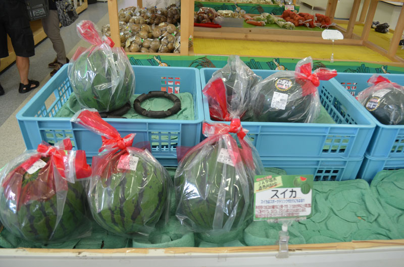 置いているのはメロンではなくスイカ。確かにスイカはウォーターメロンではあるが、どこを見渡してもメロンは見当たらない。しかもこの道の駅、完全に手抜きで地元のスーパーを無理やり道の駅にした感がある。 |