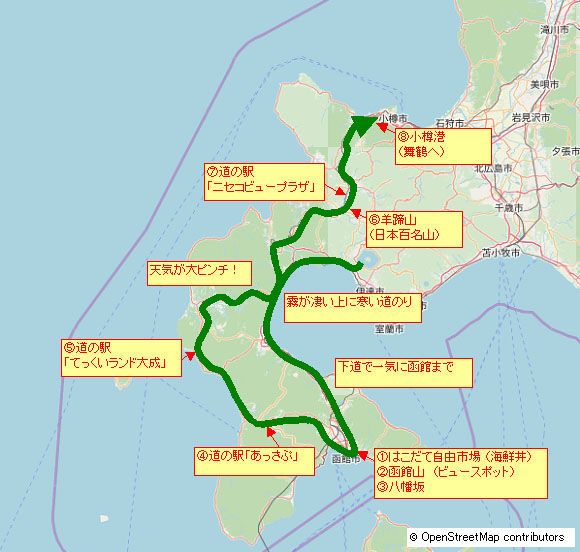 このまま国道5号に合流して途中、どこかで休憩しようと思ったが、後ろの木材を積んでいるトラックが木屑を落としながら走っていたので休憩もせずに長万部を越えて一気に函館までやってきた。