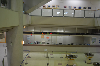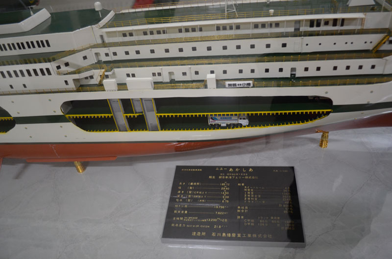 出航は23:30。まだ時間があるので適当にターミナルをぶらぶらする。「フェリーあかしあ」の模型。このフェリーは国内の航路では一番大きな旅客船で速度が30.5ノット(時速56.4km/h)という超高速船。(1000キロ以上離れている京都舞鶴まで24時間かからない)