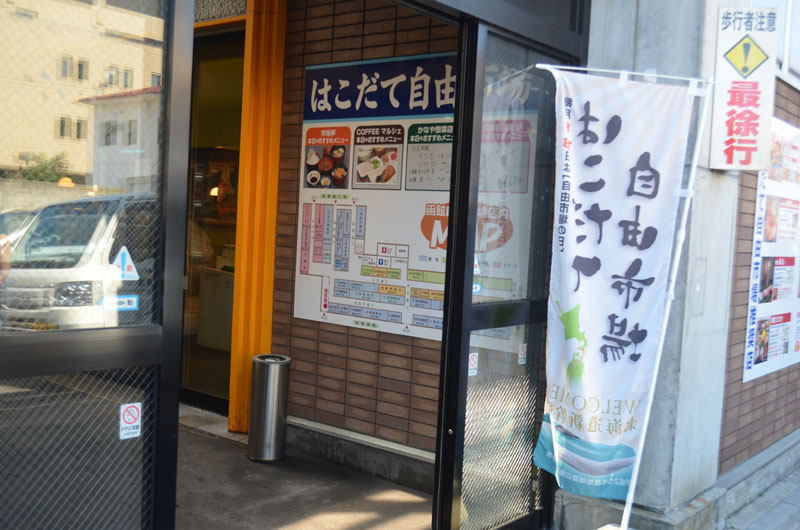 | 最初にツーリングマップルで調べておいた「はこだて自由市場」に行ってみる。ナビに案内されるままやってきたが、想像以上に小さな市場でなかなか見つけることができなかった。 |