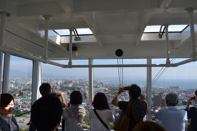 自由市場からそれほど遠くない場所に函館山ロープウェイがあるので、次はそこに行ってみる。函館といえば函館山の夜景というぐらい有名。平日の朝10時にも関わらず、大勢の人がロープウェイの前に並んでいた。 |